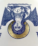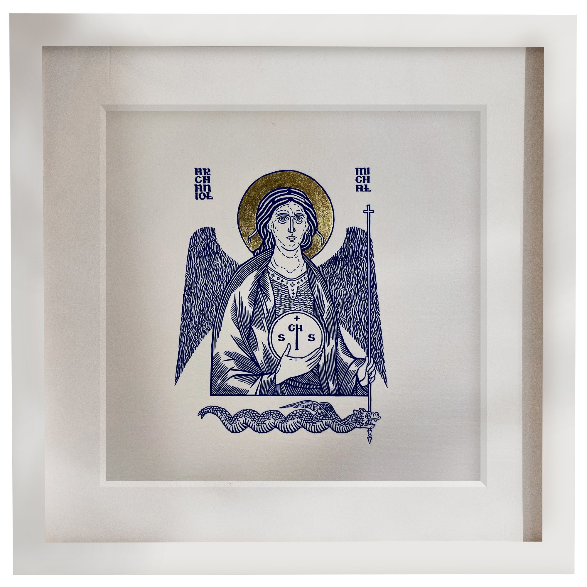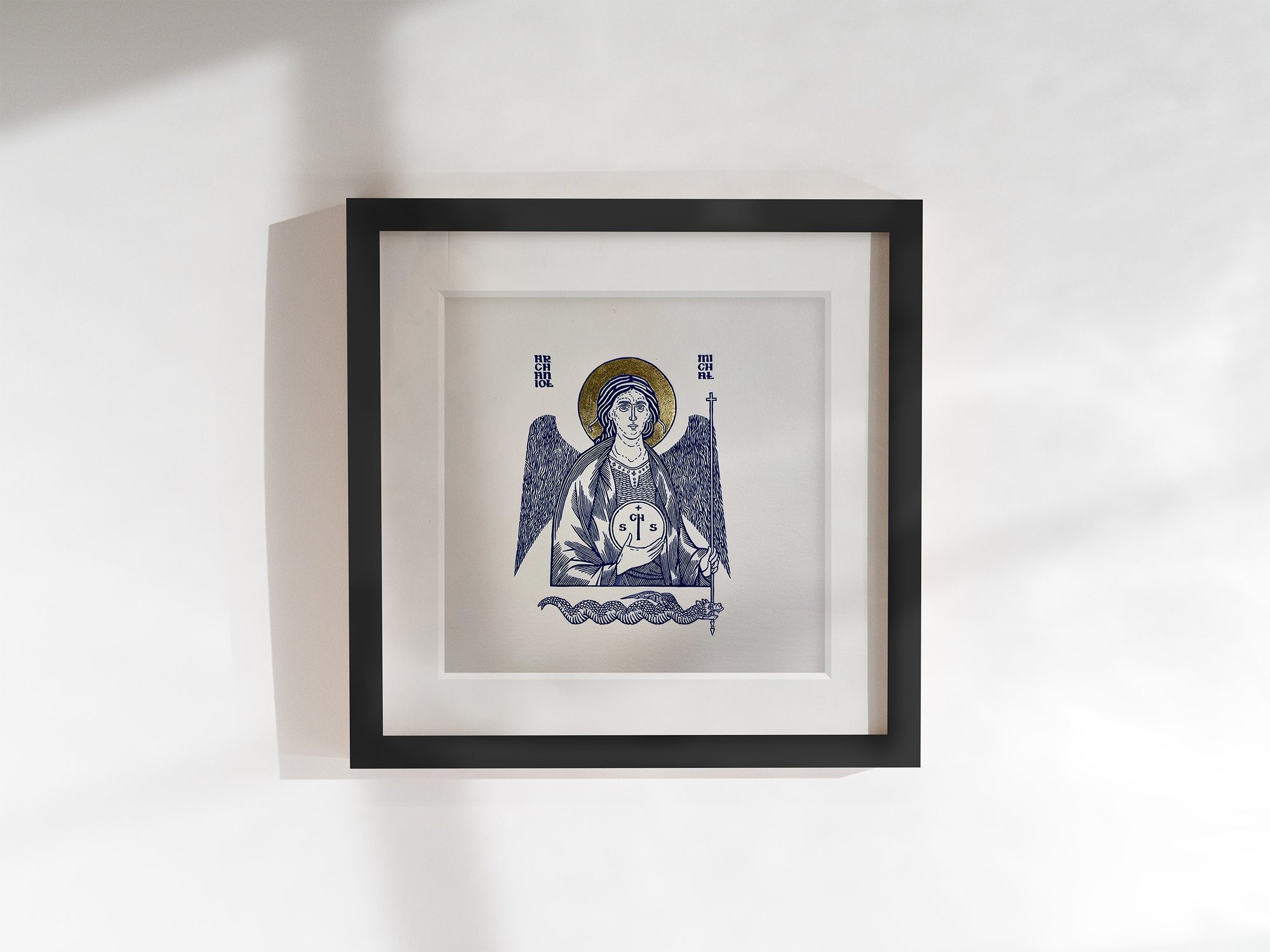 Przedstawienie bizantyjskie połączone z elementami zachodniej ikonografii. W prawej dłoni Archanioł trzyma glob, na którym widnieje skrót CHSS (Chrystus Sędzia Sprawiedliwy = Miłosierny), ułożenie liter odnosi się do atrybutu wagi. U dołu wije się smok, diabeł, któremu Archanioł Michał przebija pysk włócznią. Anioł ubrany jest w kolczugę nawiązującą do jego funkcji wodza zastępów niebiańskich. Przepaska na włosach symbolizuje wierność Bogu.